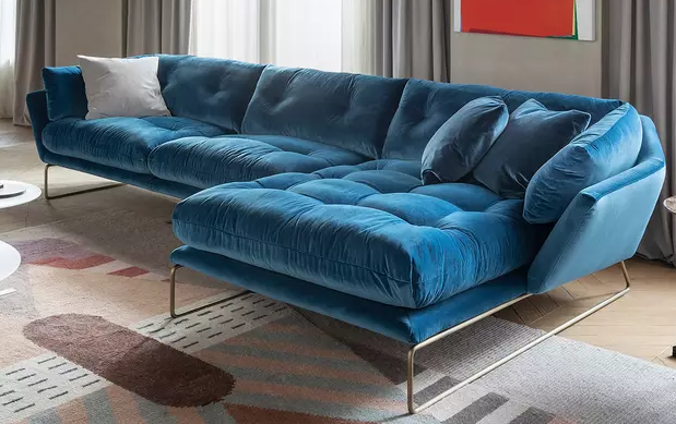 Saba Диван с оттоманкой New York LARIO 1403 TOP 320*165*75 см.,+3 подушки 50*50 см.,цвет горчичный, ножки блестящая латунь